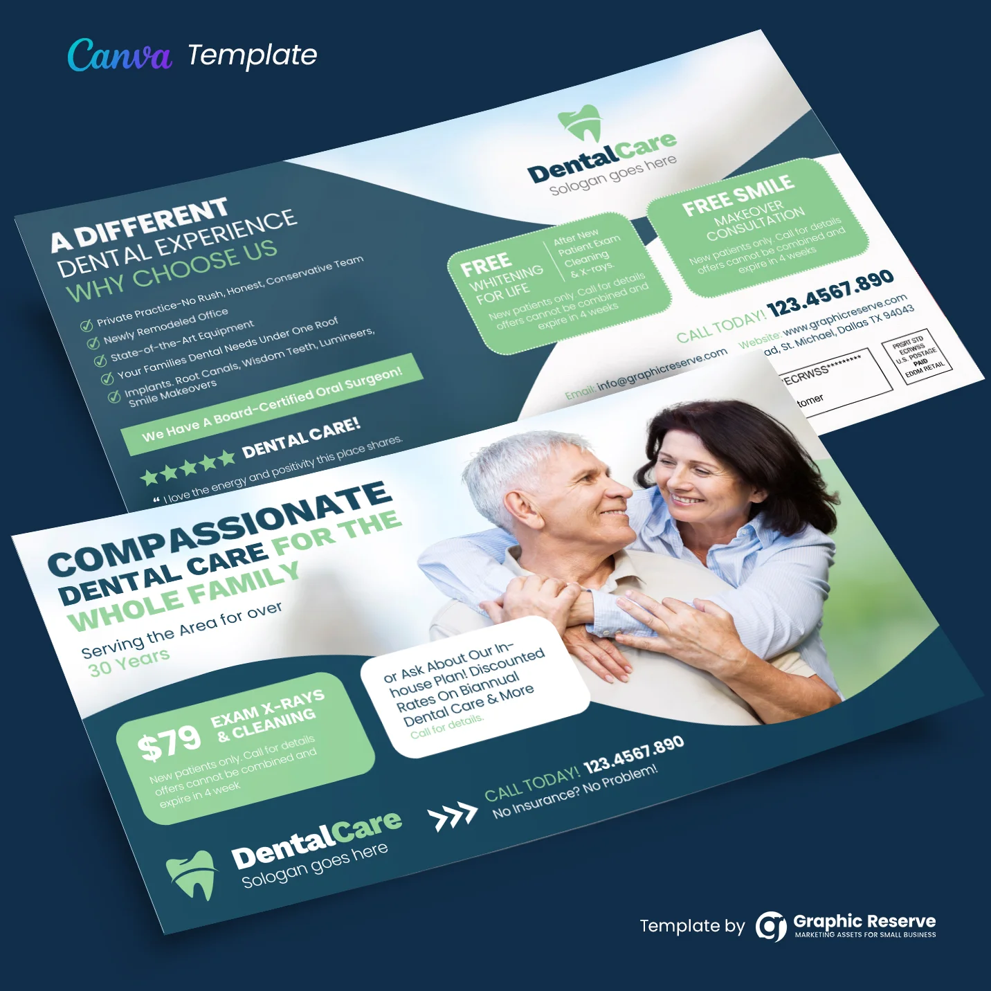 Dental Direct Mail Marketing Postcard Design (Canva Template)
