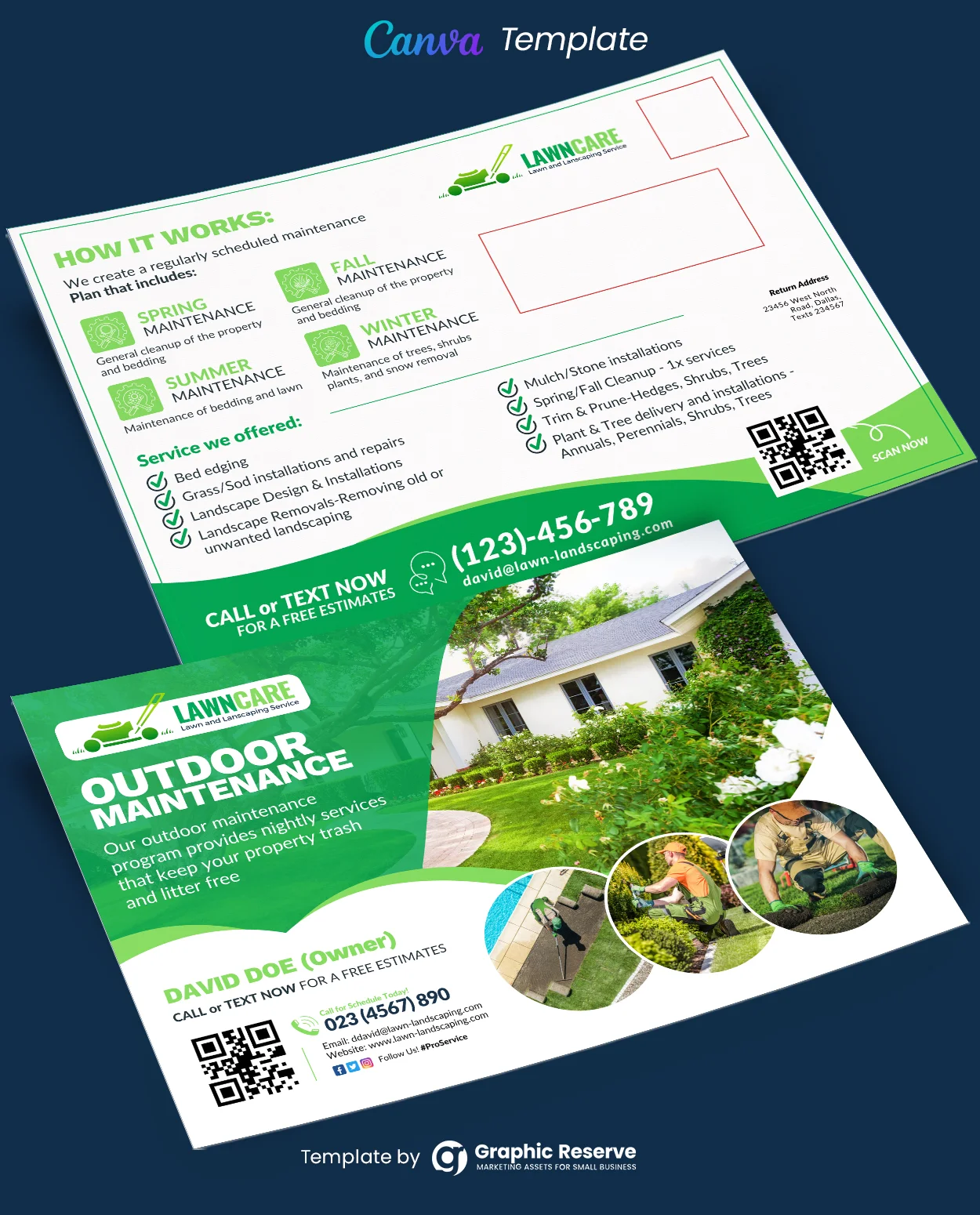 Landscaping direct mail Canva EDDM Design Easy online customizable, all you need to know is the very basics of Canva to change your details and images then It`s print-ready!