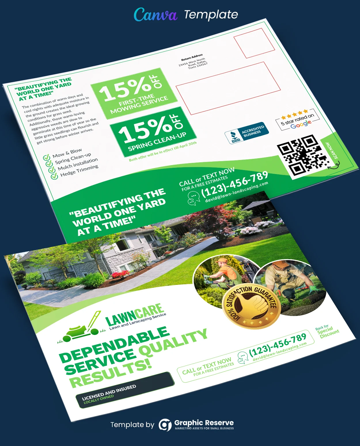 Grow your lawn care business with our Lawn Service EDDM Postcard Canva Template. Easy to customize, print-ready, and tailored for effective local marketing.