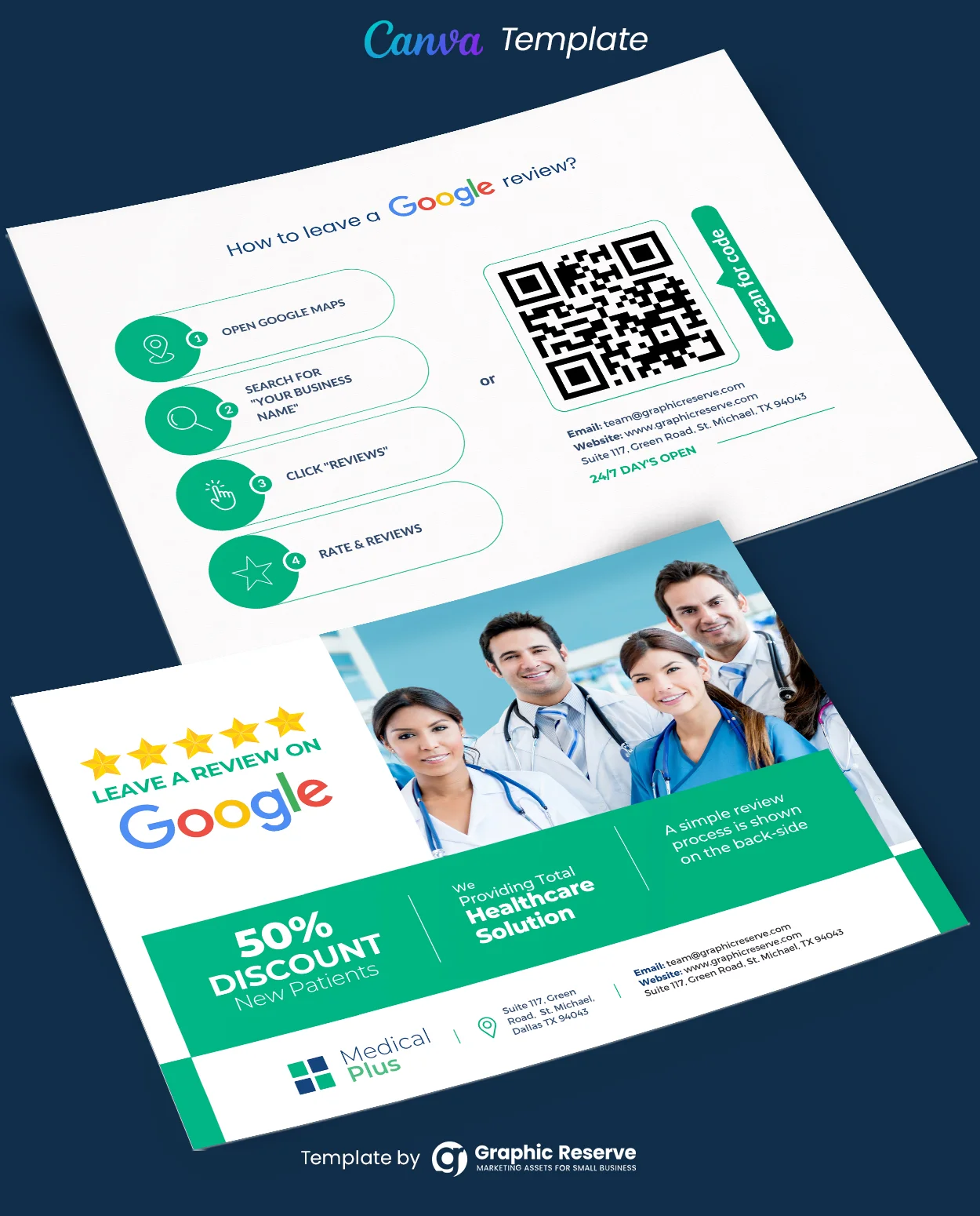 Medical Review Postcard Design Template for business purposes, Easy to edit online editable Canva template.