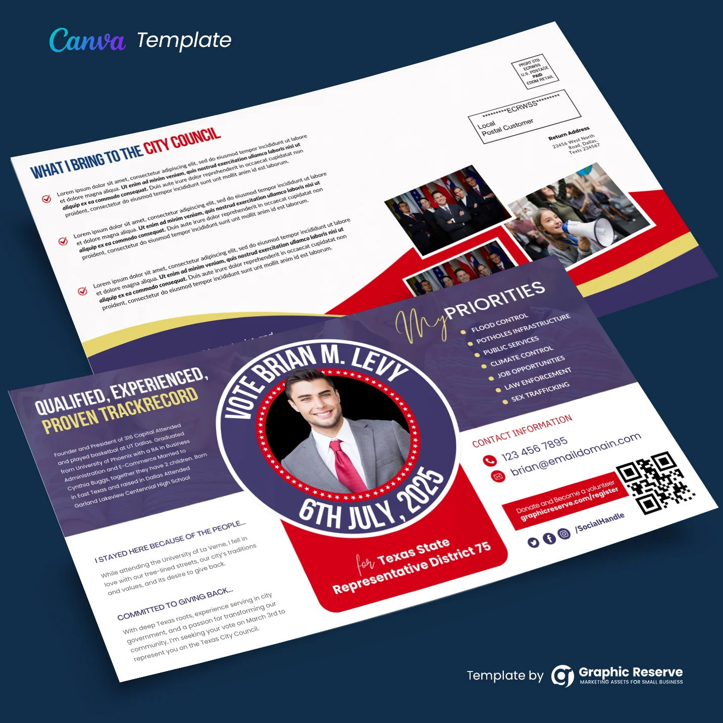 Political Mailer Template (Online editable Canva format)