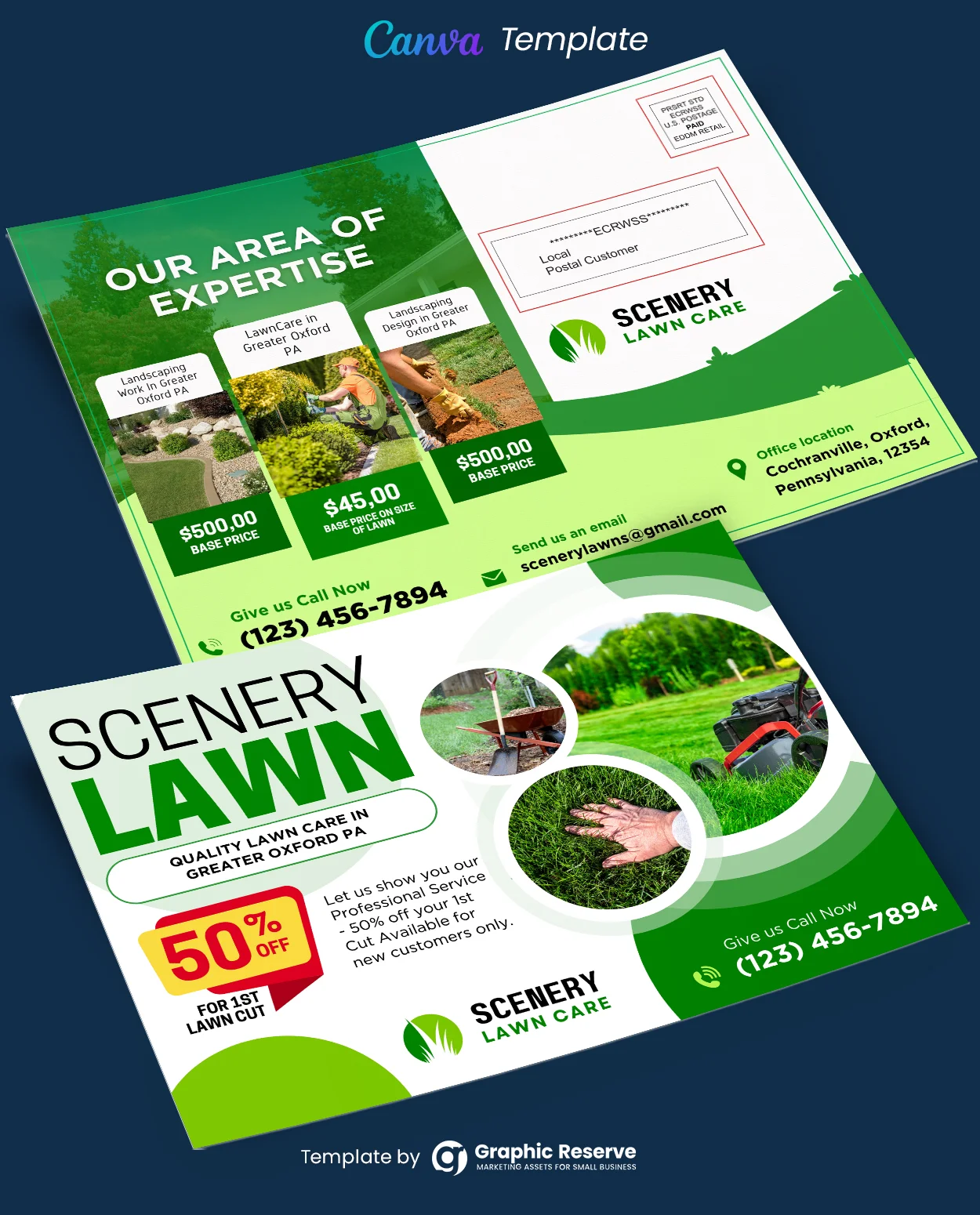 Scenery Lawn Care Landscaping Service EDDM Postcard Canva Template