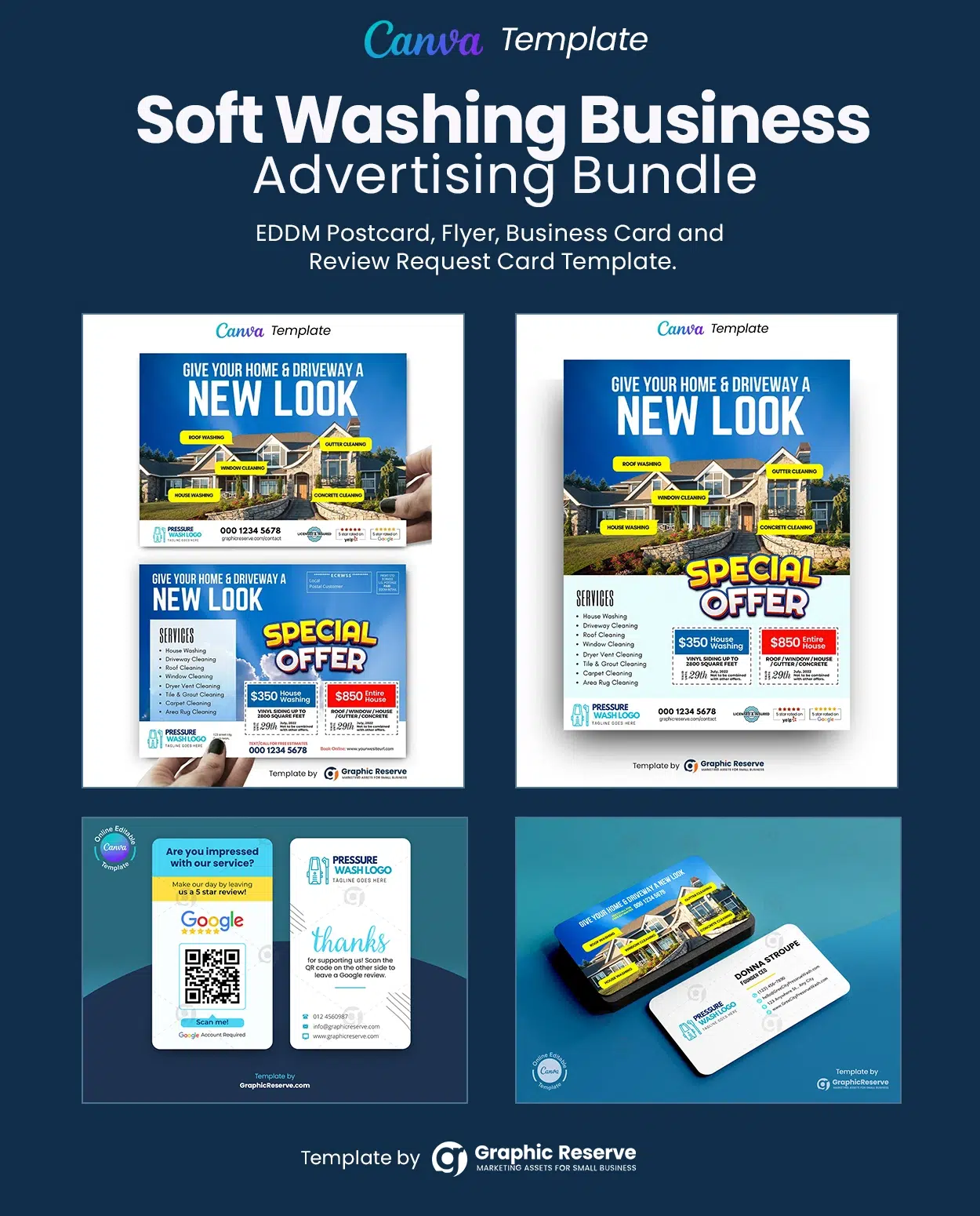 Save more, stay consistent across your branding, and get all the essential tools to advertise your soft washing services effectively.