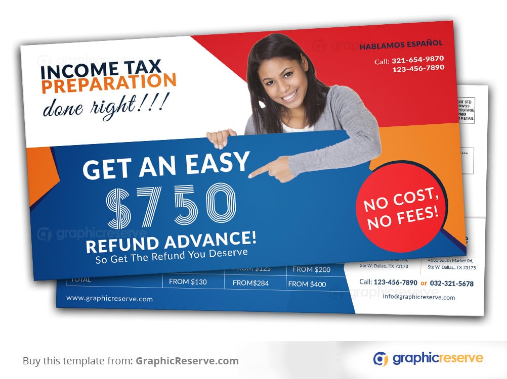 Clean and modern Tax returned EDDM Postcard for tax layer. This design was originally made for a Tax layer and we modified the design as Tax Preparation Service promotional EDDM template.